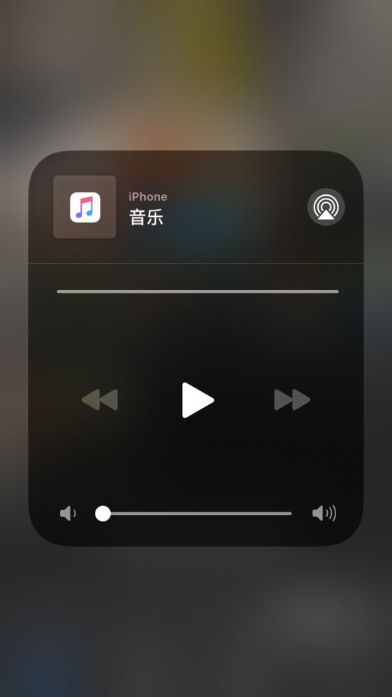 6个快捷开关区域的旁边,是iPhone的音乐播放器快捷区域,这一小块区域平时会展示iPhone当前正在播放的音乐文件的名称,下方则是常规的播放键与上/下曲的切换键。点击该区域左上角的AirDrop图标或者长按该区域,就可以进入到详情页,在详情页里增加了歌曲的进度条和音量控制条,点击AirDrop图标之后则会出现选择传输对象的菜单,菜单最下面依然保留了音量控制条。