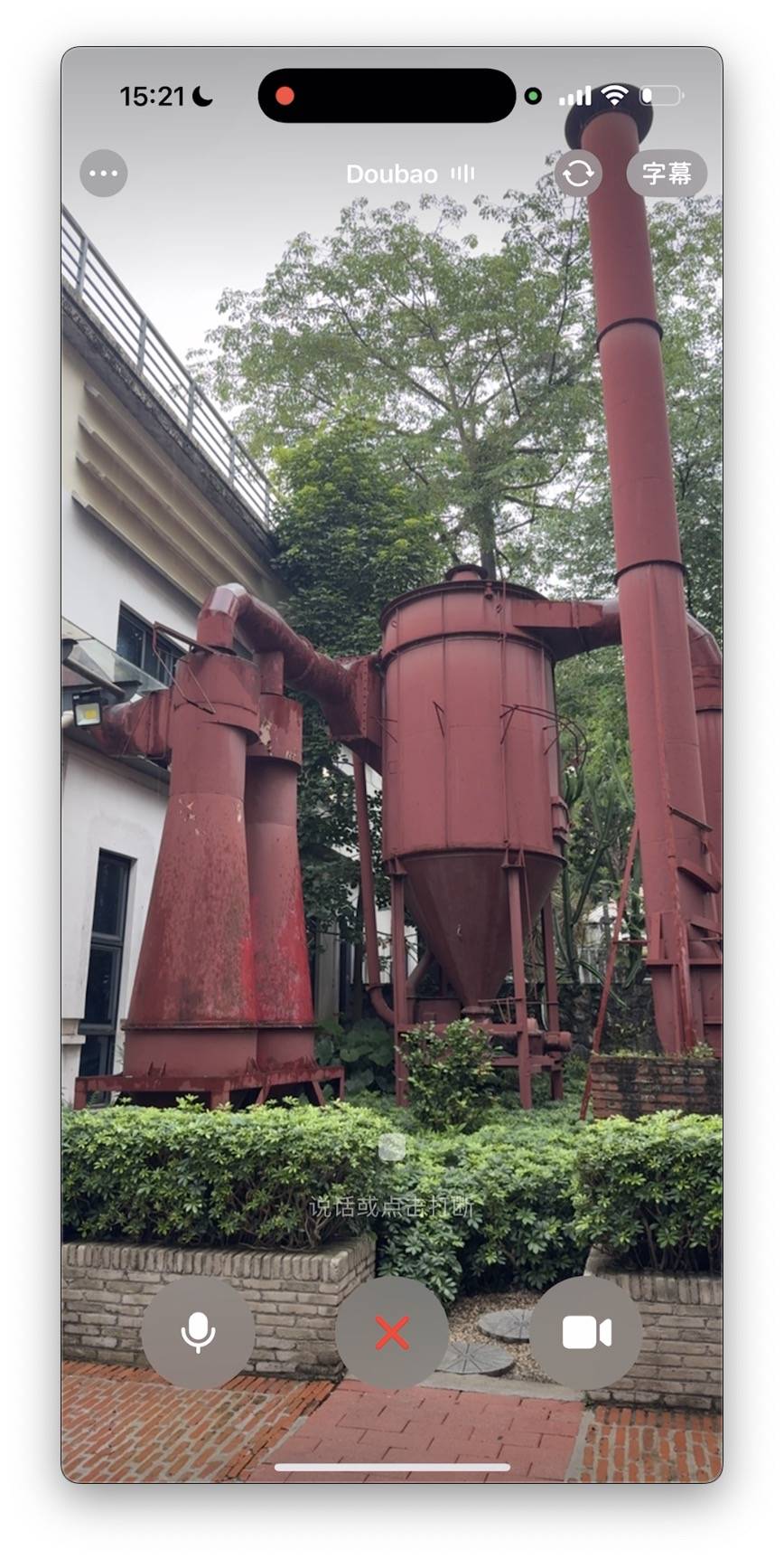 再来看看这个红色的大型设施,在生活中并不常见,我边逛边给豆包「打电话」,它很快识别出这个物体是「铸造抛丸除尘器」,还介绍了具体用途。
