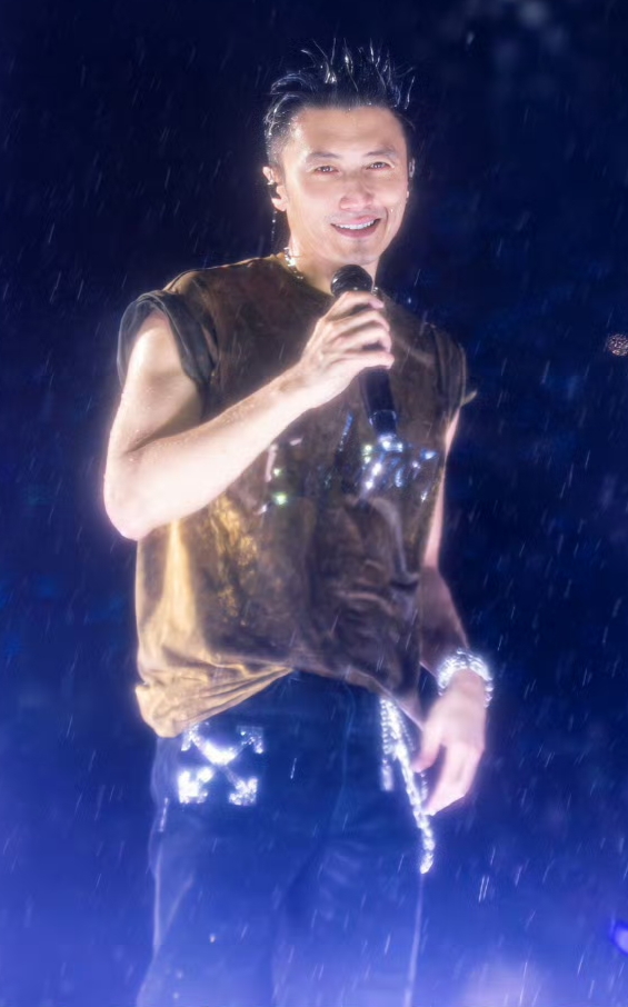 当他唱起《谢谢你的爱1999》时,全场大合唱的声浪甚至盖过了哗啦啦的雨声;而演唱《活着VIVA》时,他全身湿透的T恤紧贴身体,却仿佛仍是二十多年前那个热血不羁的少年。更让人印象深刻的是,他在台上突然幽默自嘲:“可惜我叫谢霆锋,不叫谢停雨。”一句话瞬间点燃全场,观众大笑之余齐声高喊“停雨!停雨!”,仿佛这样一喊,老天真的会听话似的。