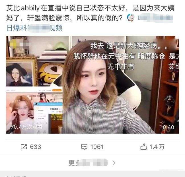 然后2020年6月,艾比在直播中直接说自己来了生理期,一个男人怎么可能来姨妈,他的迷惑发言让一同直播的好友都失去了表情管理。