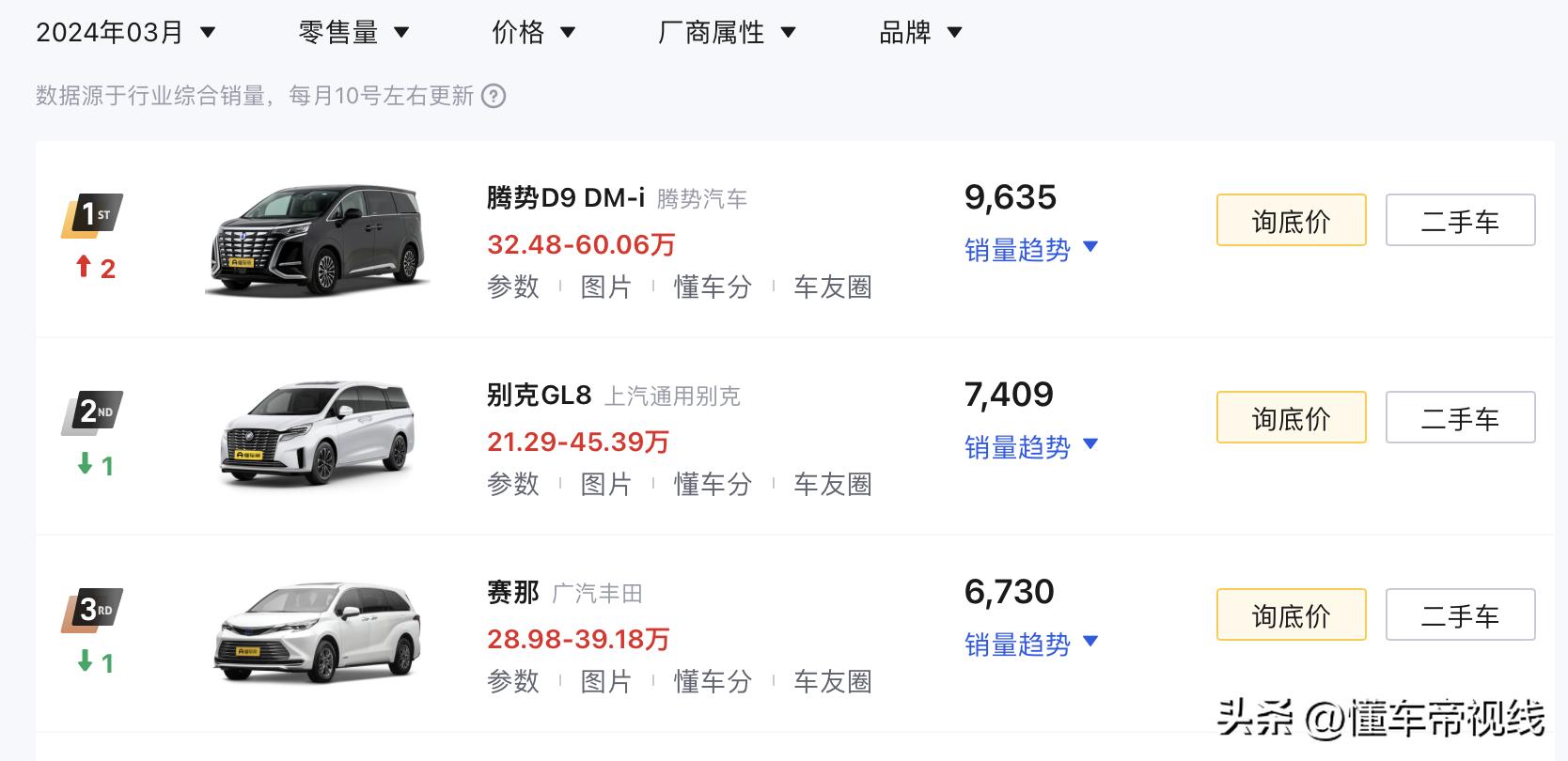 格瑞维亚定位于中大型MPV,与别克GL8、腾势D9 DM-i、赛那等车型处于同级。结合销量数据显示,今年3月,格瑞维亚销量为3771辆,市场表现不及腾势D9 DM-i、别克GL8、赛那。随着2024款格瑞维亚推出后,预计产品力进一步提升。值得注意的是,格瑞维亚和赛那可以理解为姊妹车。那么问题来了,您会选赛那还是格瑞维亚呢?