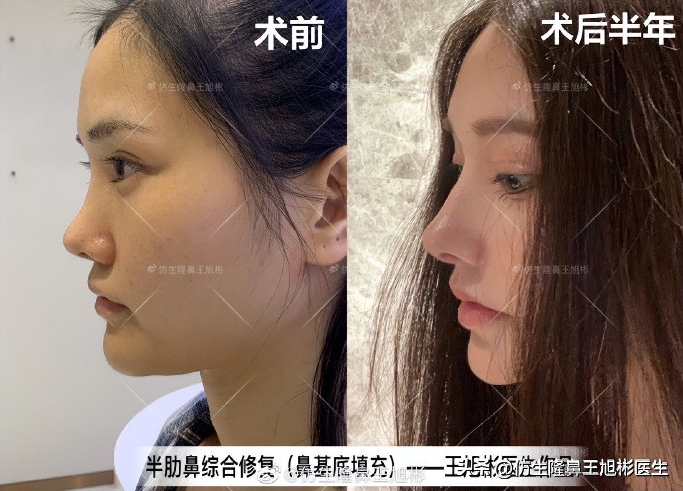 错过了最佳治疗时期后,如果为了补救立体度的不足,去做一些诸如填充额头,垫翘下巴等常规操作,对她们来说就是适得其反。因为症结在于中面部是个“洼地”,把洼地填平才是正解,垫鼻梁和鼻基底填充才是最对症的解药。