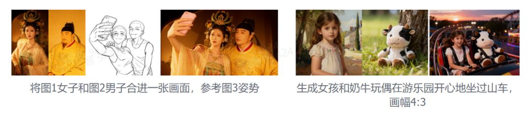 多图输入输出:支持用户一次性处理多张图像并进行复合编辑,支持组合、迁移、替换、衍生等复合编辑,实现高难度合成。