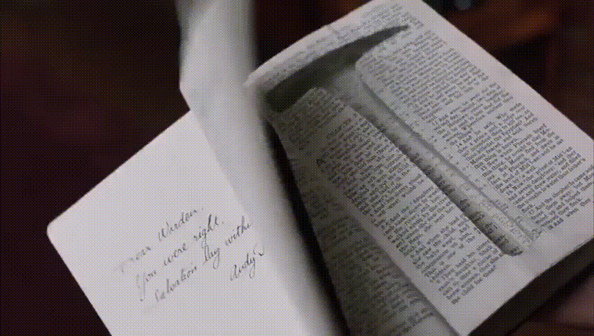 诺顿急了,打开保险箱,只有一本被安迪挖空放石锤的圣经,上面写着:“救赎之道,就在其中”。随后诺顿在被抓前开枪自杀。