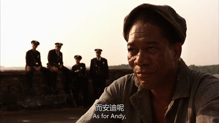 瑞德:“阳光洒在我们肩上,感觉自己又自由了,就像在修着自己家的屋顶一样”,他看向安迪,安迪靠着墙,脸上扬起了奇异的笑容。