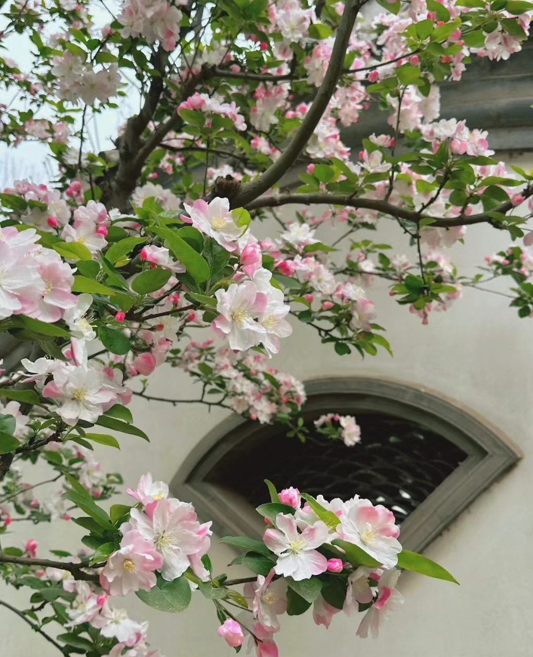 我们再来欣赏一下木本的海棠花。这一款木本植物植株能够达到好几米,所以它适合种在花园的最上层。而草本的海棠只能够作为地被植物去栽种。