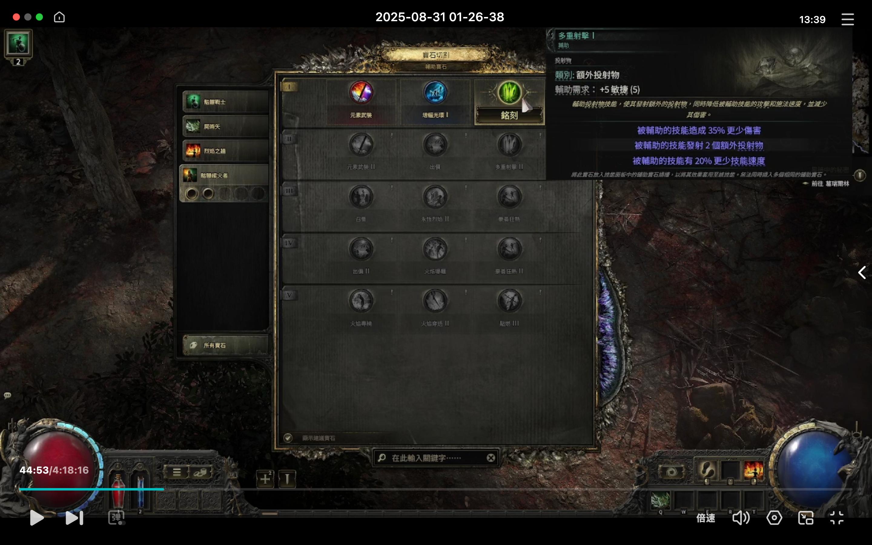 击杀boss后这里赠送了三级主技能宝石,我这边也是先将骷髅纵火者点出来并配上多重射击和火焰灌击两个辅助技能
