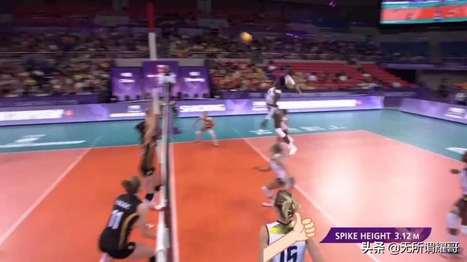 说完了扣球高度的几个要素,我们再来说说实际比赛中的情况。在当今女排最高水平的比赛中,超手扣球数见不鲜,但并不是每个球都能扣到3米左右。