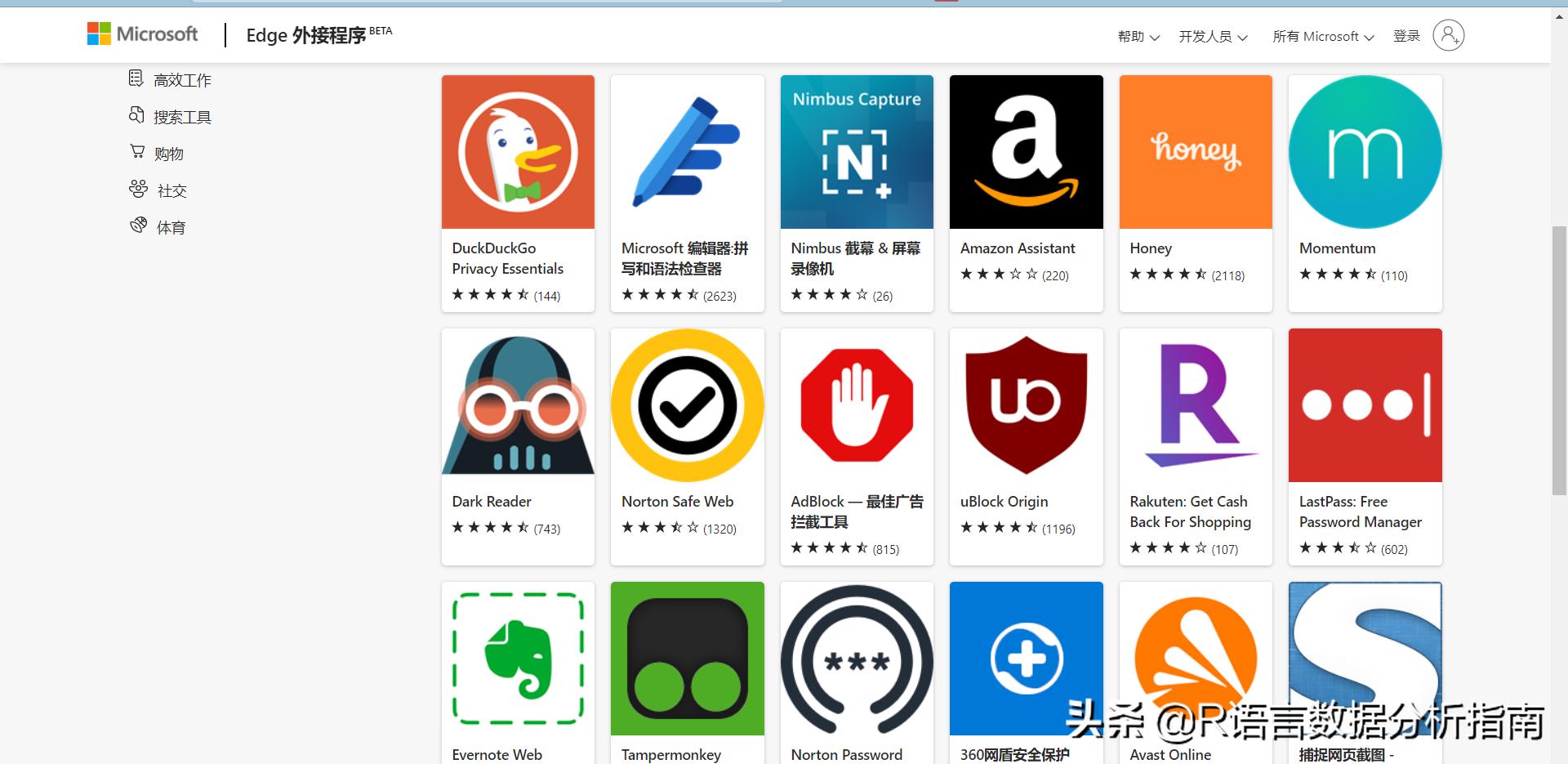 那么怎样的一款浏览器才是人性化的,当然是可以随意安装插件的浏览器,Edge自带有插件商店,可以毫无困难的打开,只需要在右上角按钮中点击扩展即可打开商店