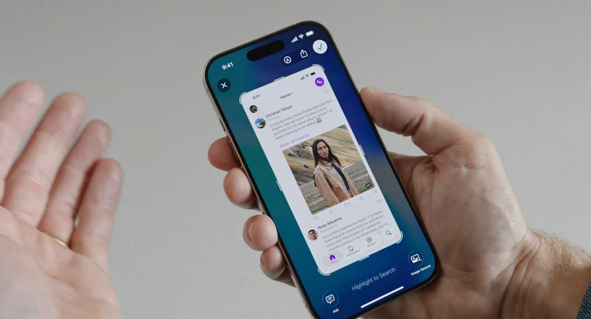 在iOS 18中,你可以使用视觉智能,方法是举起iPhone查看你好奇的东西,触发视觉智能(如果你有相机控制按钮,可以通过该按钮触发;如果没有,可以通过控制中心触发),然后查看有关相机所对准物体的信息。例如,它可以识别建筑物,或者从海报上提取日期并添加到你的日历中。当你外出时,这一切都很方便,但当你只是在浏览网页,想知道某人穿的衣服来自哪里,或者某个视频是在哪里拍摄的,该怎么办呢?