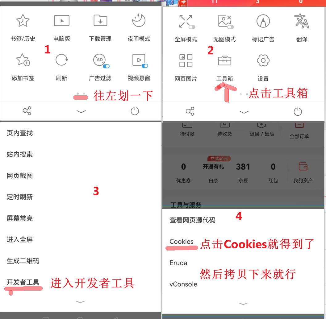 总有一些原因需要抓取一下JD的Cookie,基本都是电脑上抓取的,但是还有有很多人不怎么方便,所以今天给大家推荐一个使用浏览器去抓取Cookie方法,以下是图文教程,大家可看