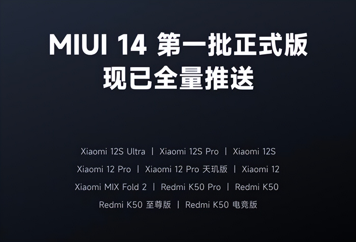 但值得注意的点来了,今天小米手机的新系统MIUI14正式开始推送了,具体推送的机型目前有11款“基本上都是属于新机范畴”,像小米12S系列、小米12全系列、小米MIX Fold 2,同时值得注意的是还有红米K50系列。