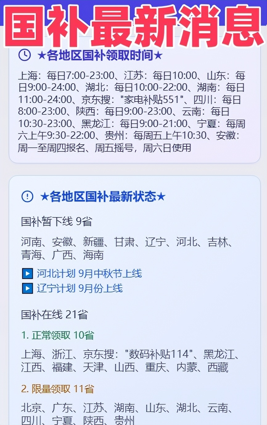 国补额度紧张!你抢到了吗?国补政策9月14日最新消息:多地暂停后重启,抢券摇号成常态,最新国补领取入口