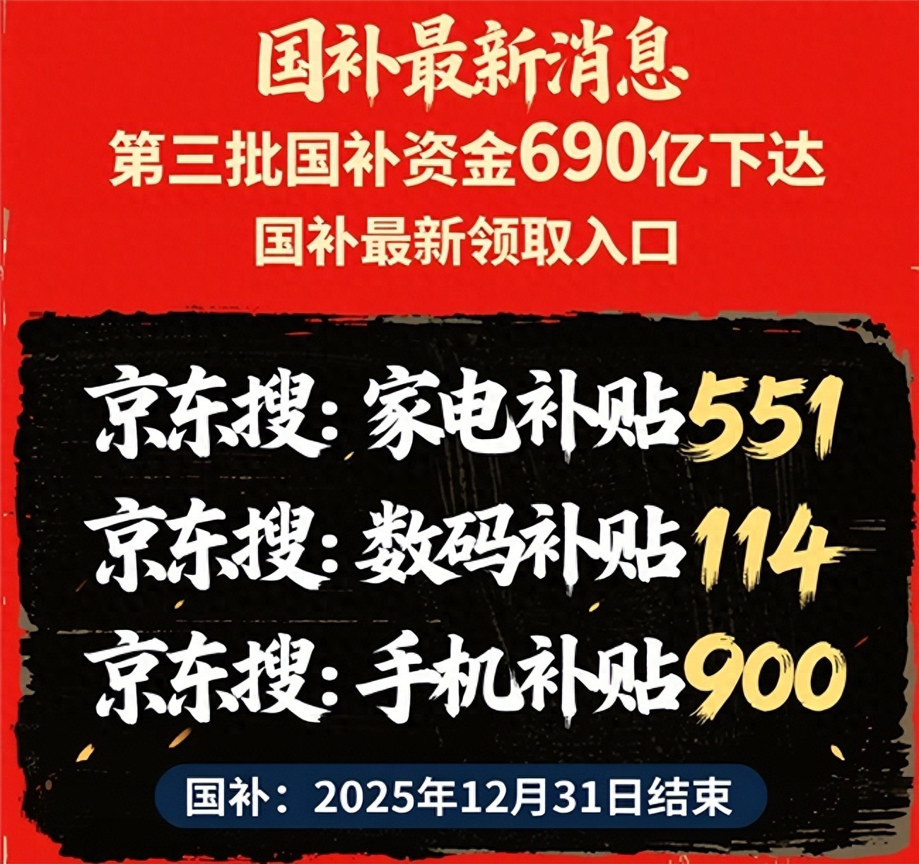 京东APP搜「家电补贴551」国补最高立减2000元,9月,国补政策进入白热化阶段。有人已经用补贴换上了全屋智能家电,直接省下两千甚至更多;有人通过手机补贴加平台红包,把新机价格打下来近千元;也有人抱怨怎么都抢不到,看着亲朋好友朋友圈别人晒战绩只能干着急。