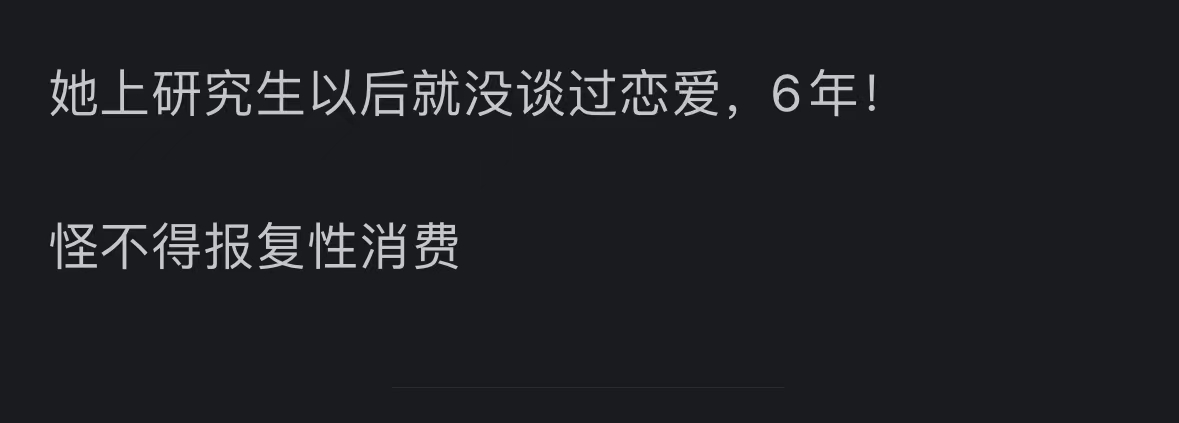 你以为的报复性消费,实则在用裙子给你扇风的时候就在预谋了,难怪硕博连读,精的跟猴一样,典型的骑驴找马,没找到马,驴也凑活吧