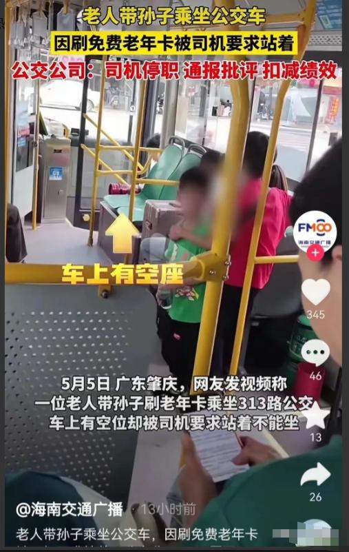 当祖孙俩上车以后,公交车司机突然朝着他们大吼道:你俩不许坐下,刷的免费的老年卡就不许坐!