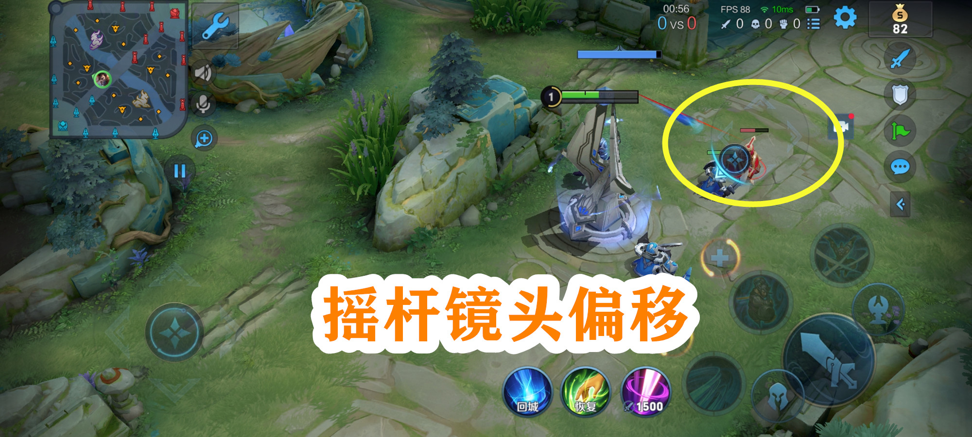 在滑动视角的上方多了一个小摄像头的按钮,拖动后视野会固定,和很多高玩的三指属于一种操作,但是想要恢复原来的视角需要重新点击,使用中的问题就是,一旦敌人进入了你的视野上方,那么如果不恢复视野你将丢失目标的视野,所以打架过程中需要重新点击,有利有弊,要视英雄而定。