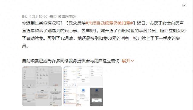一网友在2023年9月开通了某网盘的季度会员,随后立刻关闭了自动续费。可到了12月底,她还是接到扣费68元的消息,被迫续上了下一季度的会员。