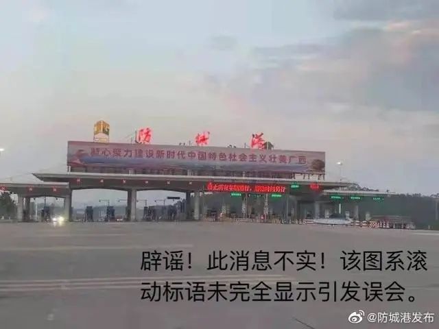 防城港公安交警在此辟谣,此消息不实!该图系滚动标语未完全显示引发误会。
