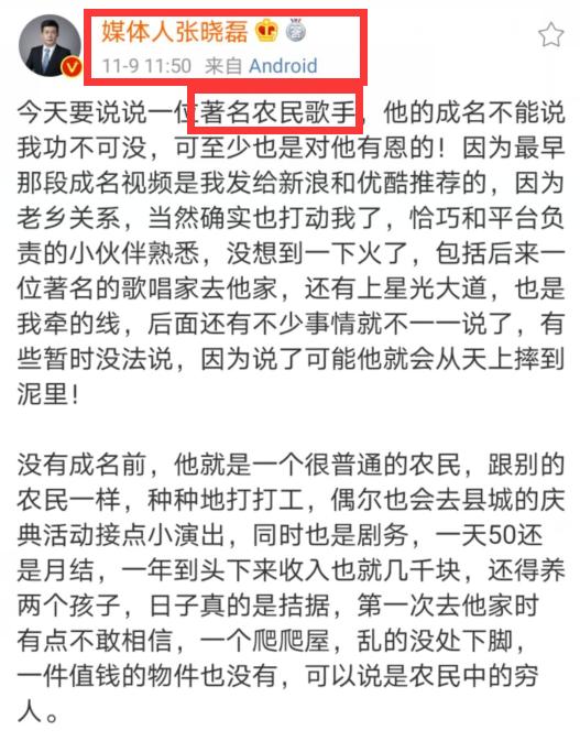 这问题就来了,谷导发文,应该是受到了大衣哥的“委托”,或者由心而发,即便不想为大衣哥说好听话,也至少站在客观公正的角度,怎能说张晓磊爆料大衣哥丑闻是为了警醒呢?你见过爆料人家丑闻当警醒的吗?如果这都算警醒的话,明星们是不是应该感谢狗仔队呢?
