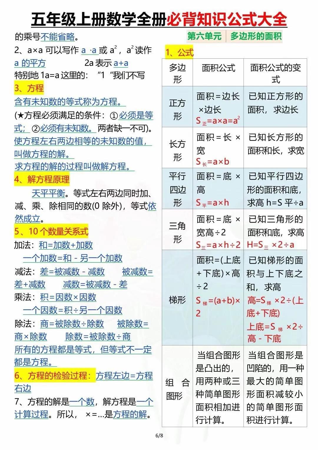 五年级上册数学:这些公式很重要,背下来开学打基础,赶紧看!