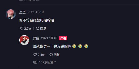 连粉丝都忍不住为他担心,博子姐真的不怕被报复吗?不过智博也大方表示,自己只是单纯模仿,并没嘲讽和内涵的意思。