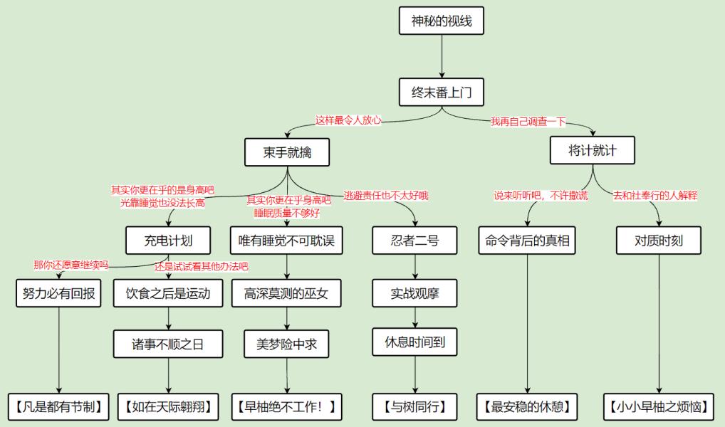 随后的对话选项可以自由选择,最后解锁结局【早柚绝不工作】。