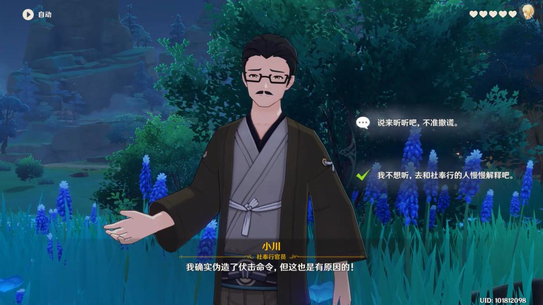 随后和早柚一同前往与社奉行的官员【小川】对质,选择【我不想听,去和社奉行的人慢慢解释吧。】