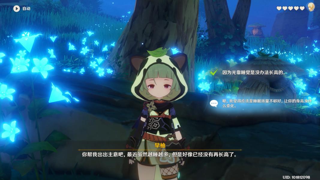 随后的对话中选择【因为光靠睡觉是没办法长高的。】