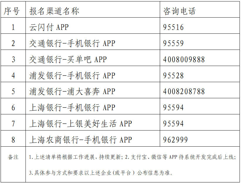 一是线上报名。每轮活动开始后,个人消费者可在规定时段内登录云闪付APP等渠道,选择所需品类报名(报名渠道见附件)。消费者可在国补专区选择多品类报名,如该消费者今年以来已参加活动并享受补贴,则不能参加相应品类的报名。消费者在市补专区仅可选择一种品类报名,参加摇号活动并享受补贴后,则不能再报名。国补和市补报名信息一经提交,不可修改。