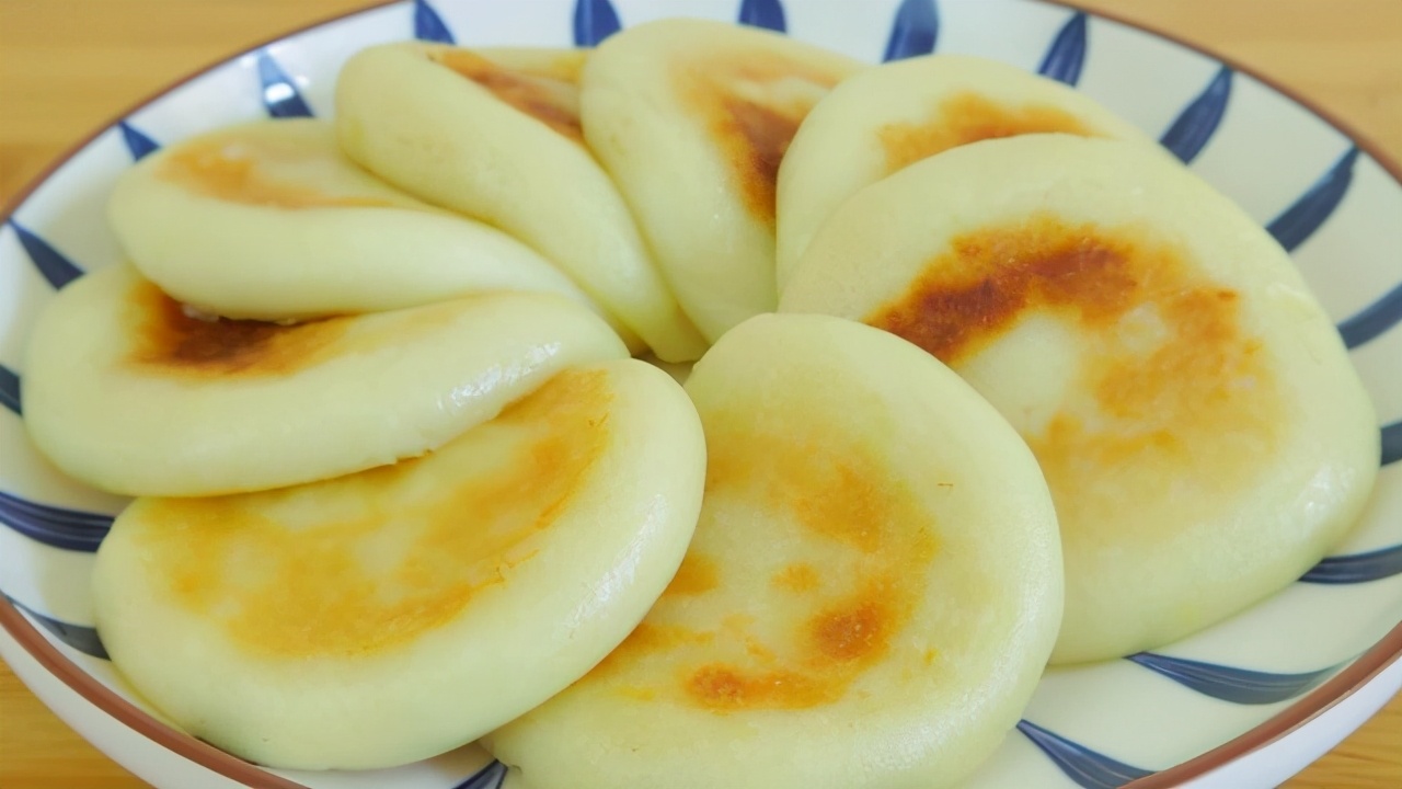 9.再盖上盖子继续烙2分钟,烙至底部金黄再翻一面,烙制饼鼓起来变得软软的就已经熟了,出锅装入盘子里面就可以开吃啦,哇真的好香啊,