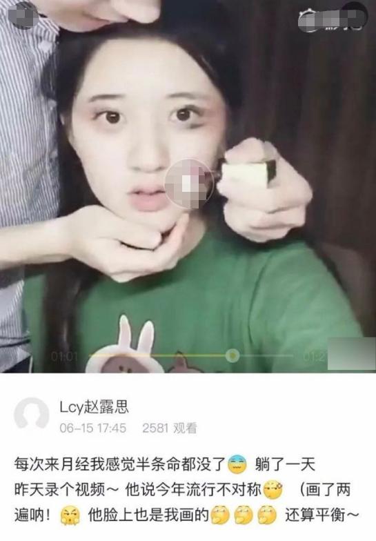 网上还流出疑似赵露思在社交账号上秀恩爱的视频截图,截图显示男方正在给她化搞怪的妆,而她配文更显甜蜜,是两人给对方化妆。