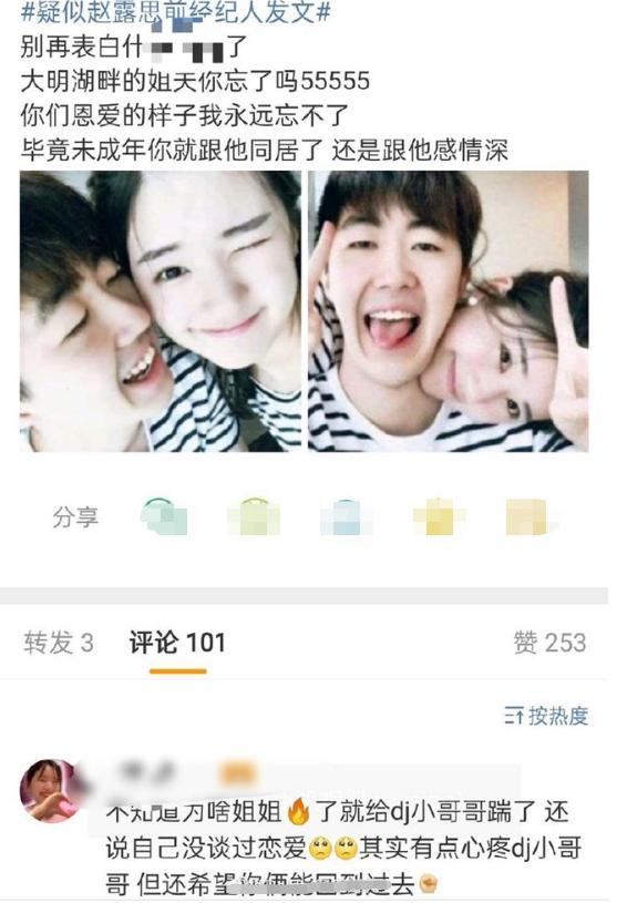 还有网友爆料称,赵露思未成年就和男方同居,两人感情深,喊话她不要再表白别人了,评论则爆料男方身份是一名夜店DJ。
