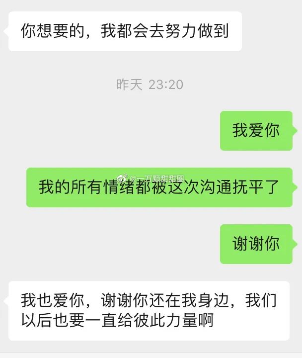 @婧狗的微博:真好,好多情况下是,女生想要沟通,男的就直接说:别写着一大堆小作文,烦人。完全不沟通,甚至吵起来。可能这才是真正在乎吧,会正向沟通,沟通完心也会贴着心,希望沉沦在不好的感情里的姐妹,都支棱起来