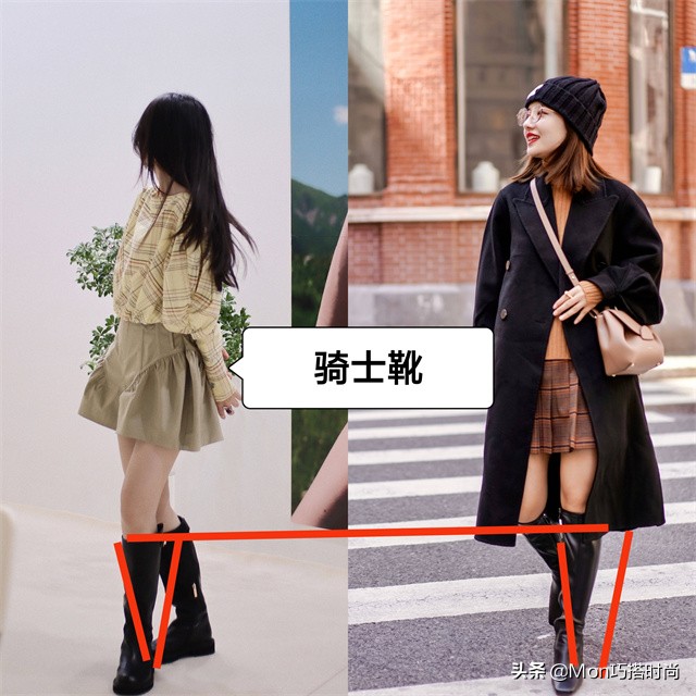 小腿粗大腿细:用宽松的靴筒去盖住最宽的小腿位置,适合一切靴筒宽松的膝下靴。