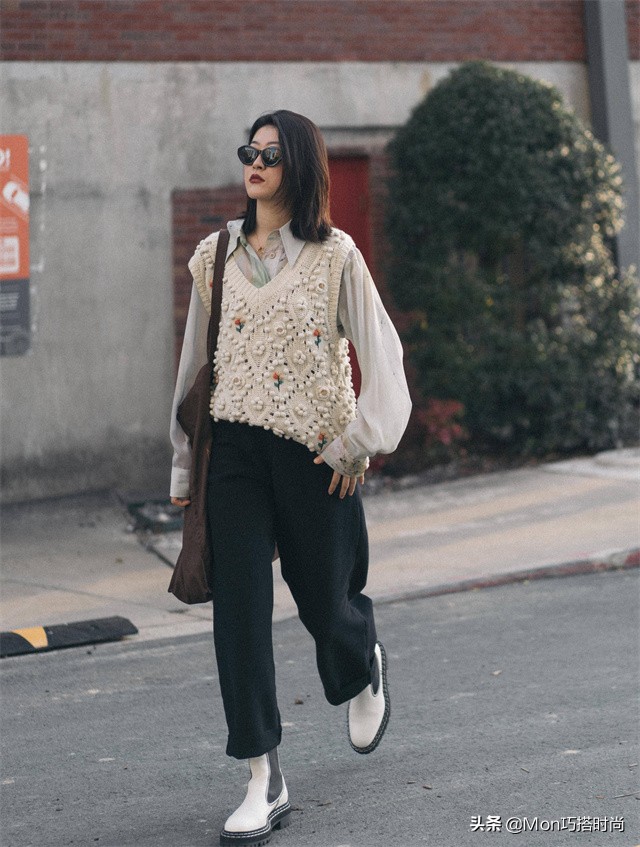 实在没有亮点的身材或者脖颈修长的姐妹就像这样来穿:脖颈用V领强化线条美,有锁骨就露锁骨。