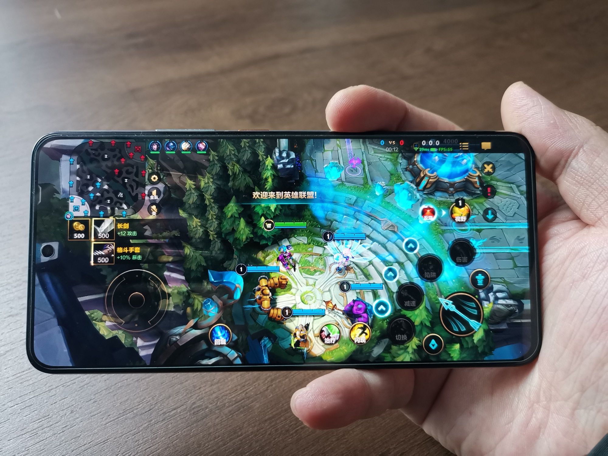 然后我们再来说游戏,正常室温,25度左右,王者荣耀连输五把,没有一把出现掉帧,开的是高画质90帧,机身会感到发热,但不会达到烫的程度,游戏的过程基本稳定(演示)。原神最高画质60帧(演示),发热严重,帧数跑不满,但总体来说能流畅运行。和平精英,只支持60帧,超高清画质下,游戏过程稳定流畅,机身会发热。不过日常使用,建议开启中画质高帧率会更省电更流畅。
