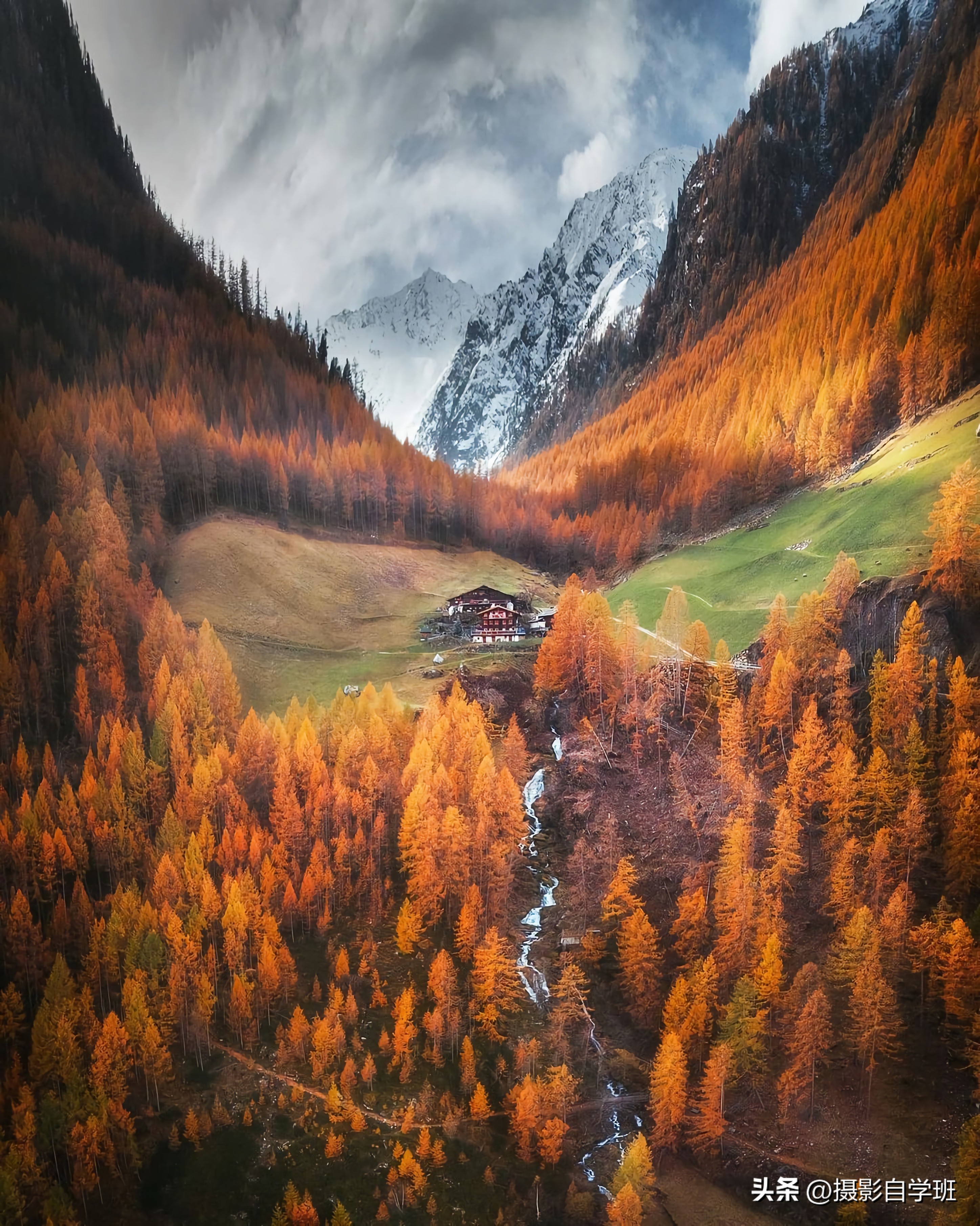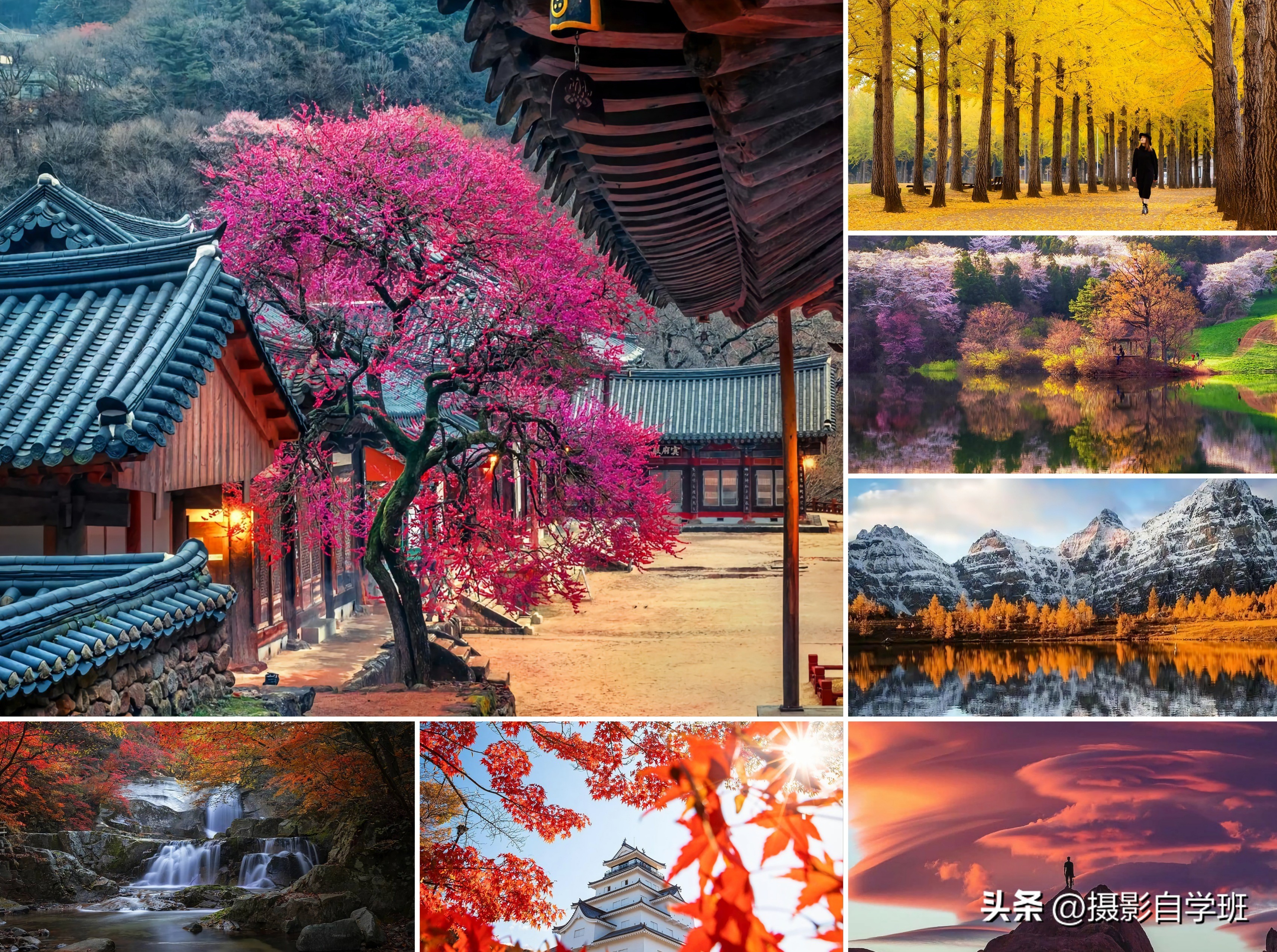 怎么能让你拍摄的风光照片,看起来非常震撼,前提就是要有非常震撼的风景。如果没有出去看大山大河,那在日常生活当中,最容易遇到的震撼风景,就是云彩。如果拍摄晚霞,想让照片看起来更加鲜艳一点,可以在拍摄的时候,改变白平衡数值,白平衡数值越大,照片看起来,就会越暖,就可以拍出上图这样的色彩效果了。如果云彩也没有,那就找一片黄色的树林。
