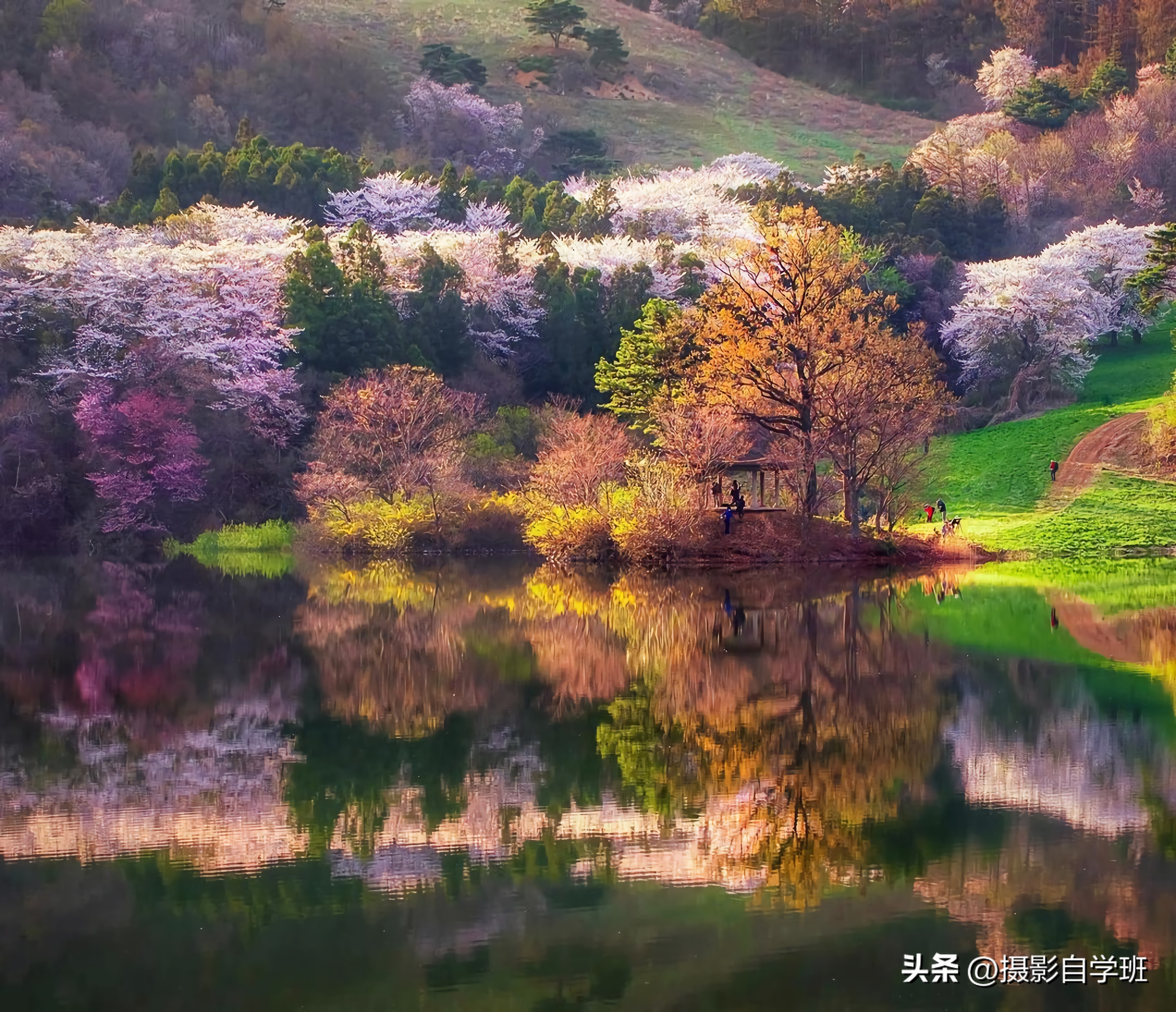 还要学会利用平常场景,拍出不一样的照片,最常用的方法,就是使用水面拍出倒影。拍摄的时候,机位要低,水平线要平,不要左右倾斜照片,看起来才会更稳定更漂亮。上面那张色彩多,下面这张色彩简单,你更喜欢哪一张?还是觉得两张,都各有各自的特点?欢迎大家在评论区探讨交流一下。