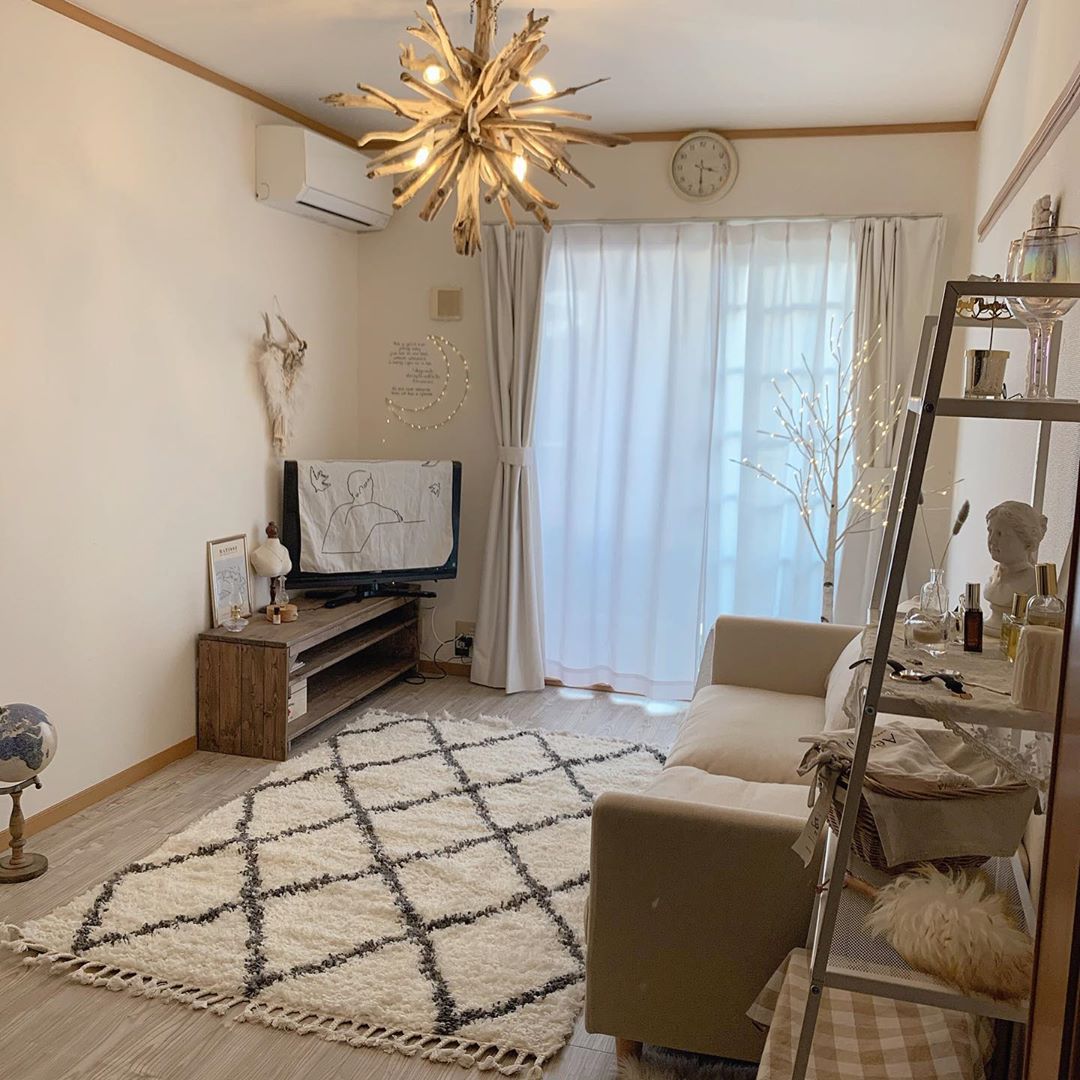 而客厅选的也是奶油色系的沙发,铺上了一整张大大的地毯,整个空间格局划分明确。