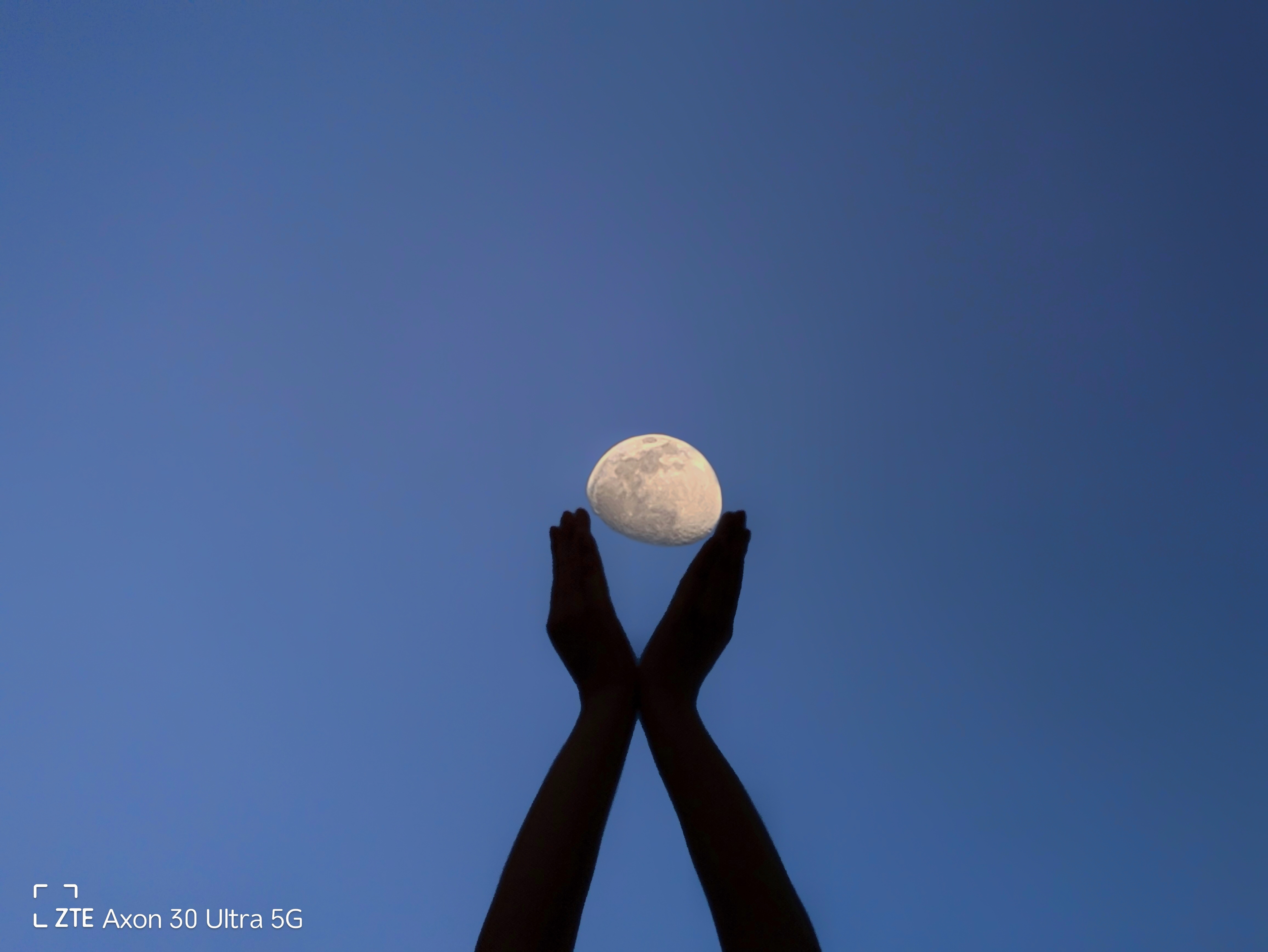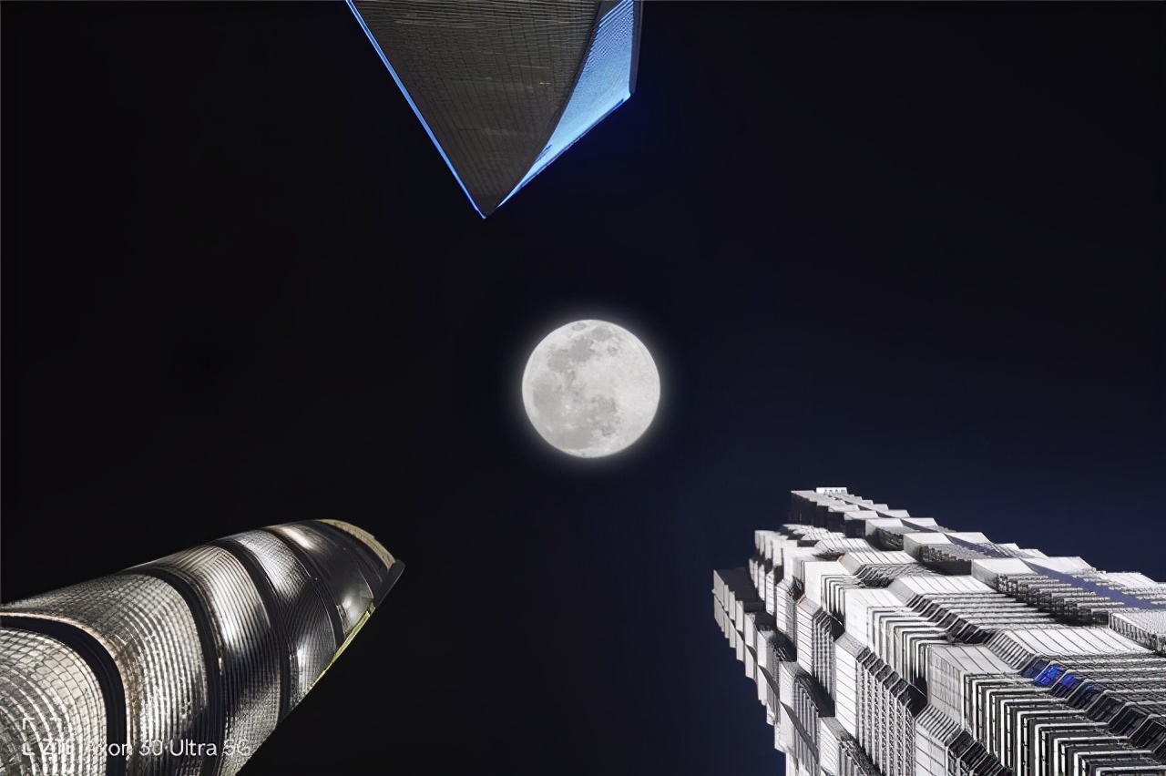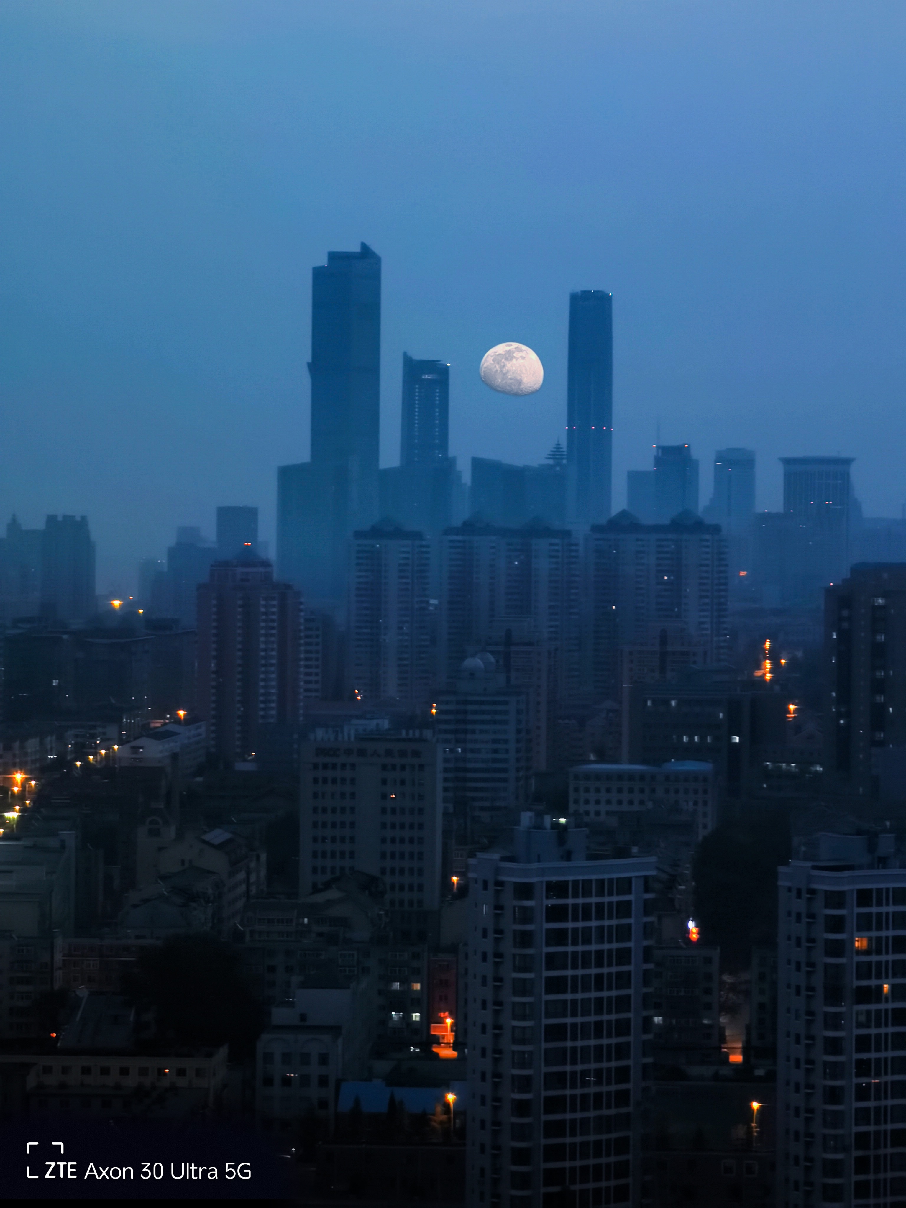 超级月亮模式是中兴Axon 30 Ultra的独特拍摄功能,这个模式下多个摄像头同时工作,画面的前景使用2X焦距拍摄,而潜望式长焦摄像头会单独拍摄月亮,再通过计算摄影的方式得到一张前景与大月亮同框的画面。