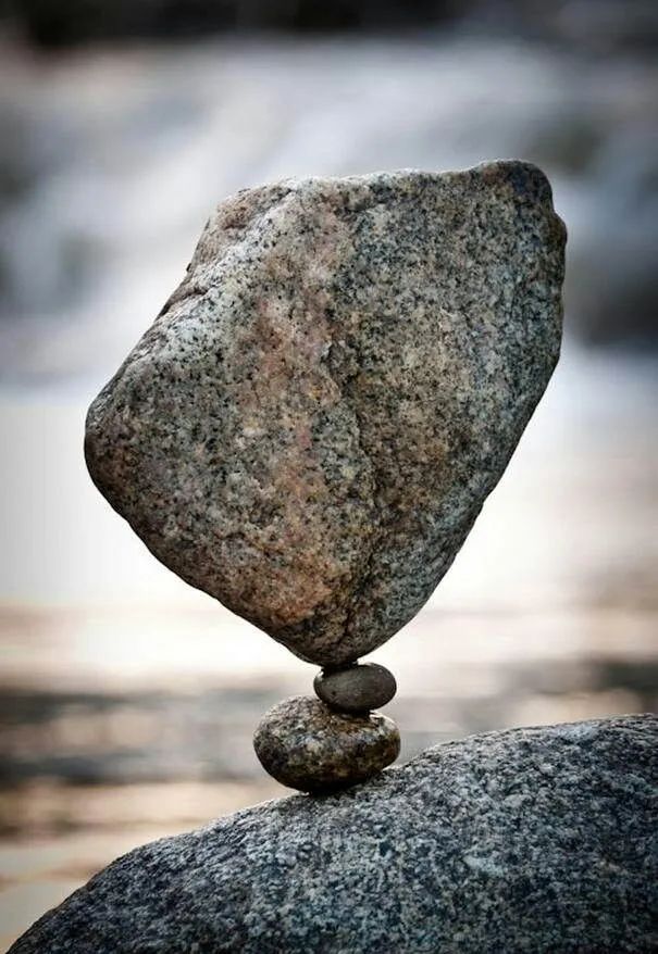 这是因为石头的每个侧面,都有许多支撑点,只要你找出最合适的三个,就能让诸多石头,相互组合而达成平衡。