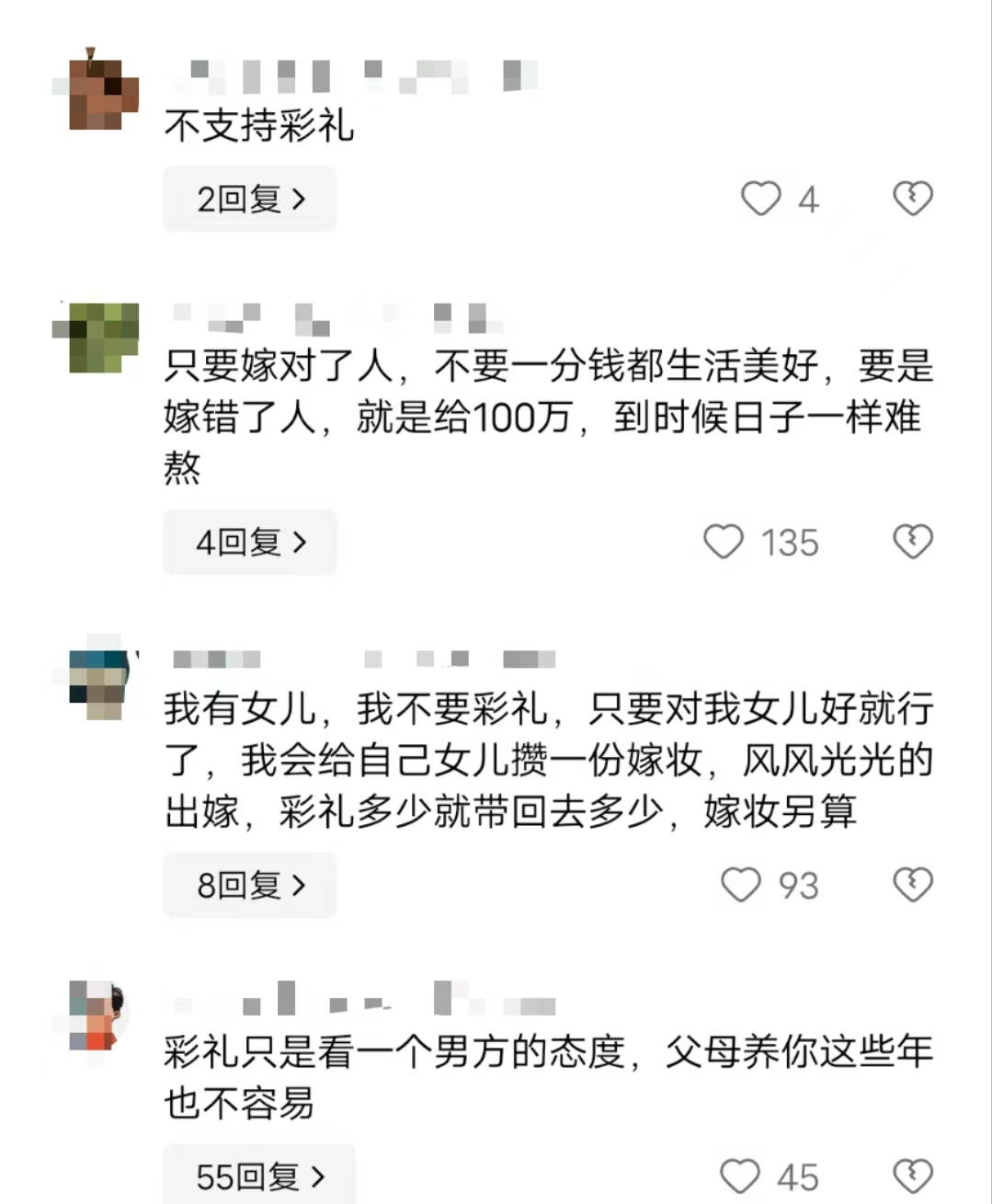 你们觉得彩礼钱收多少合适?欢迎在评论区留言。