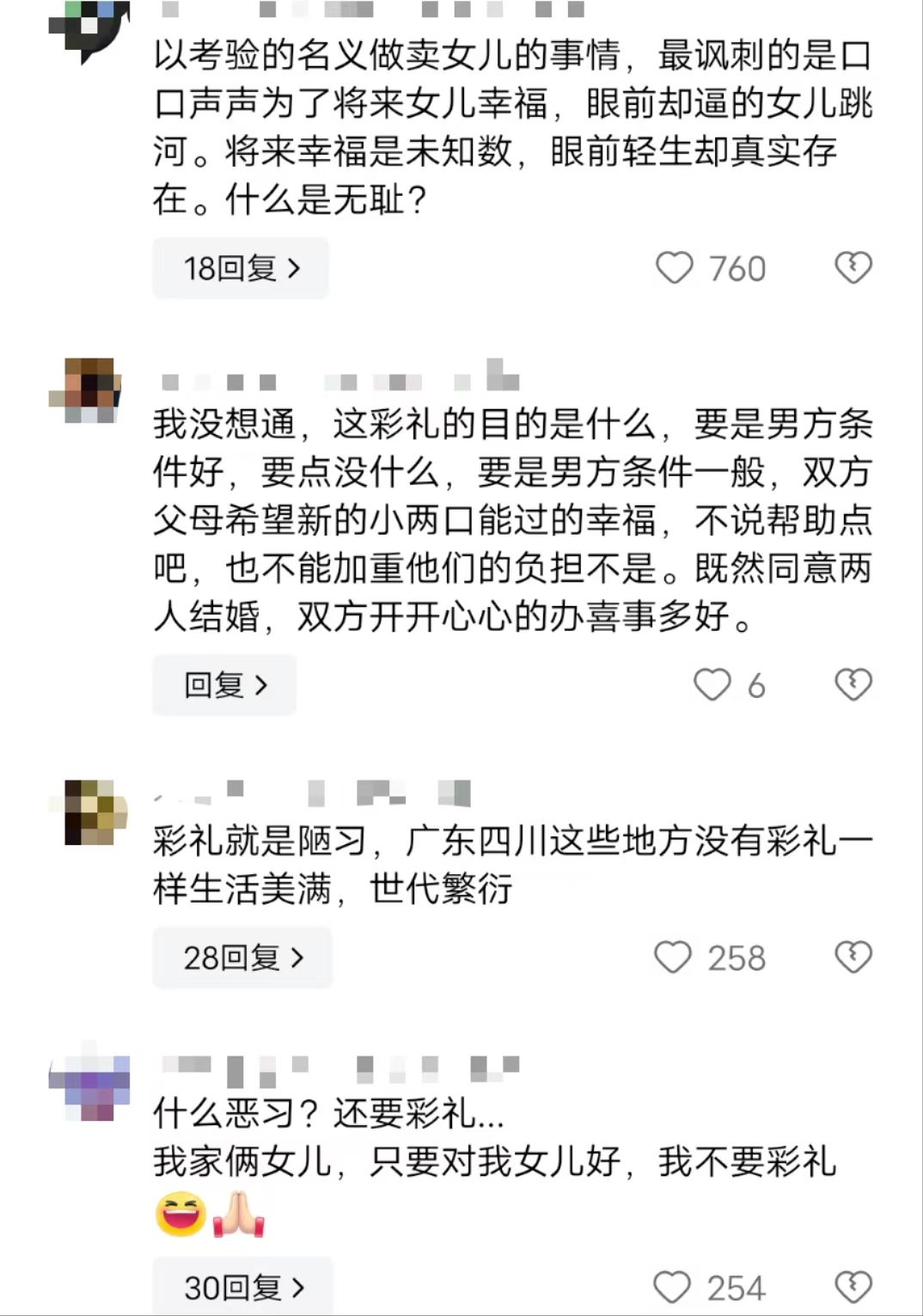 我养头牛养几年都要卖几万,我养个女儿20多年,收点彩礼又怎么了嘛。