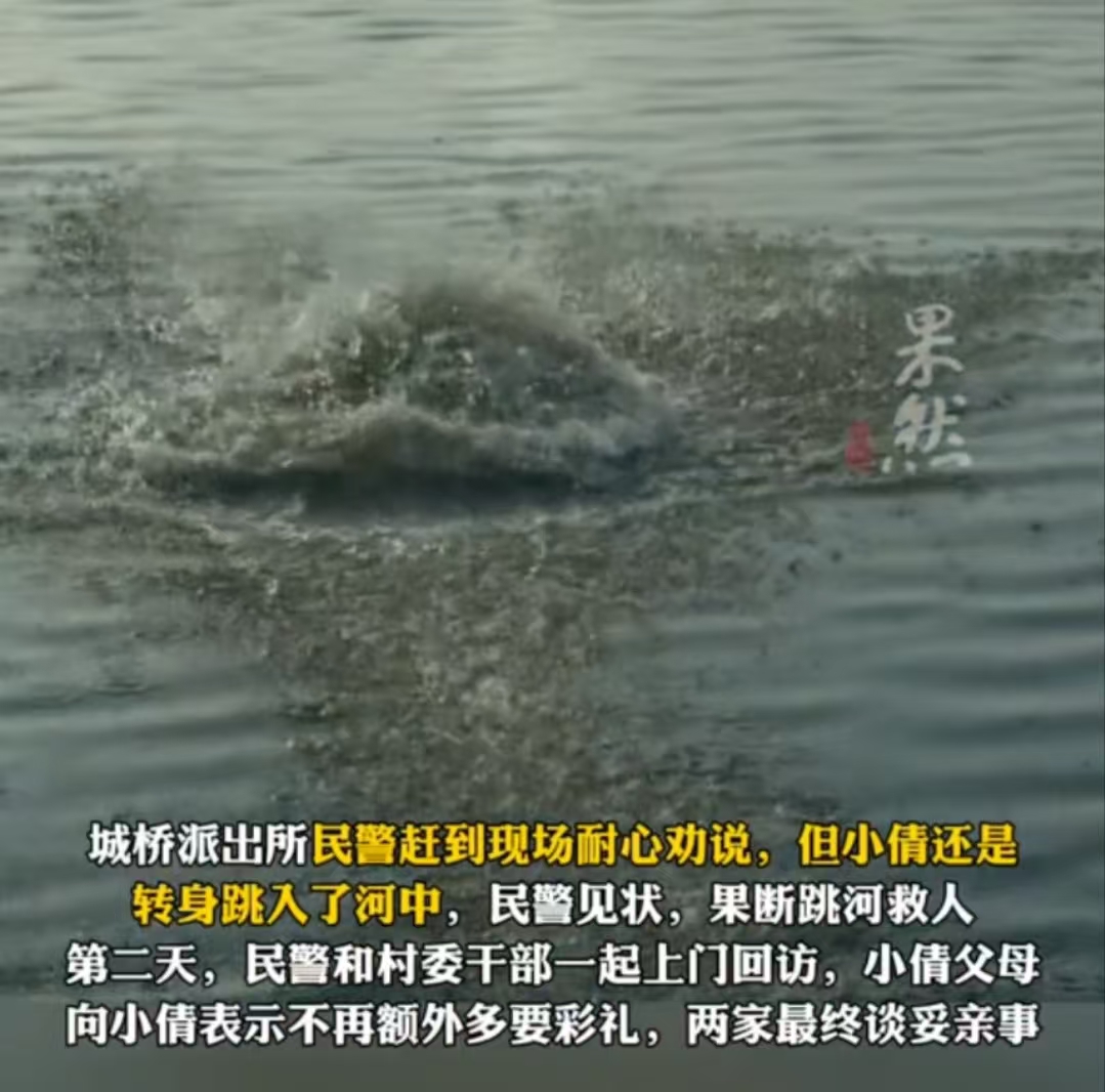 好在父母及时发现报警,在江里救回了小倩,后面经民警与村委干部耐心劝说,小倩父母放弃额外彩礼要求,两方这才谈妥了这门亲事。