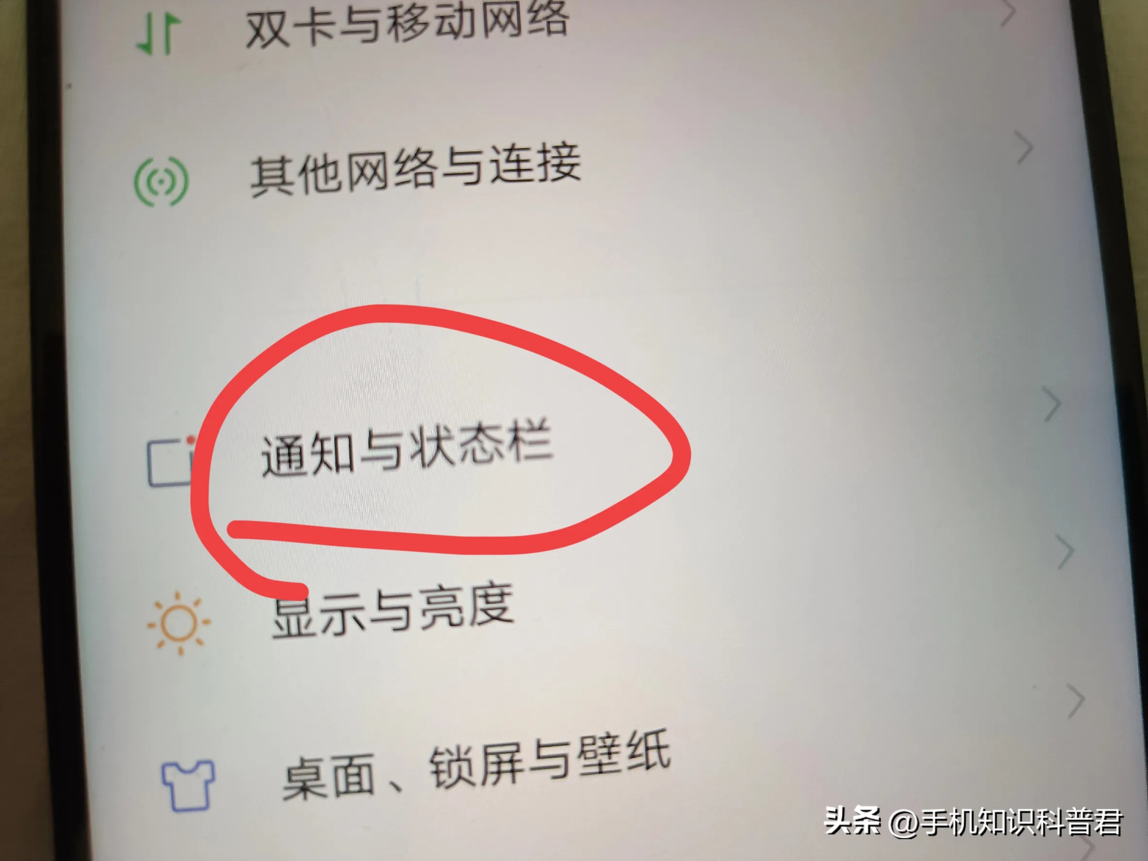 往上滑,找到“通知与状态栏”。(如上图所示)