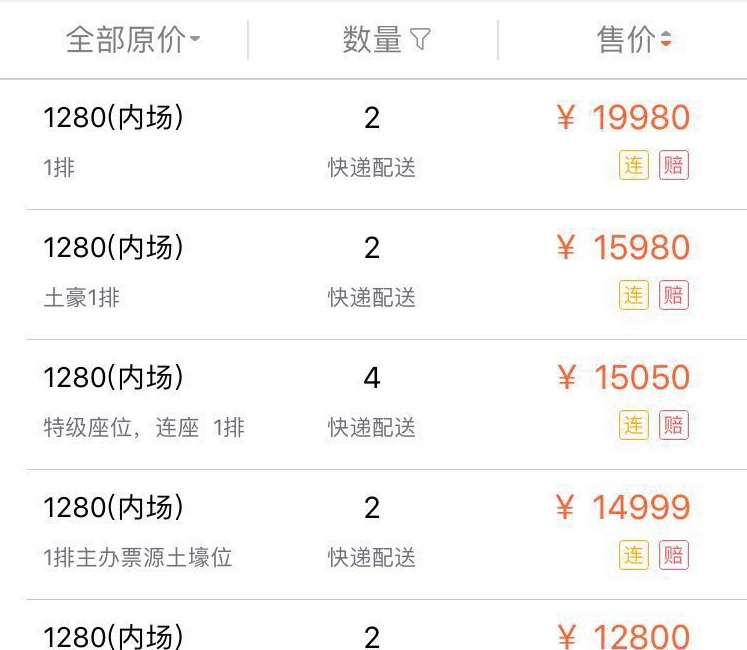 但是黄牛的票价简直让人“叹为观止”,原价1280元的内场门票最高居然被炒到了19980元,翻了十几倍。