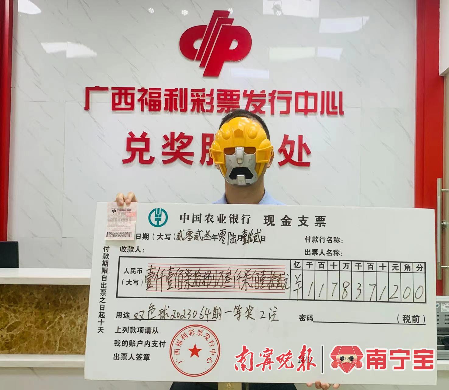 据悉,福利彩票双色球游戏第2023064期于6月6日开奖,广西中出一等奖3注,其中1注出自平果市,投注方式为10元的自选单式投注;2注出自南宁市,投注方式为20元机选单式2倍投注。黄先生是该期南宁市2注一等奖获得者。