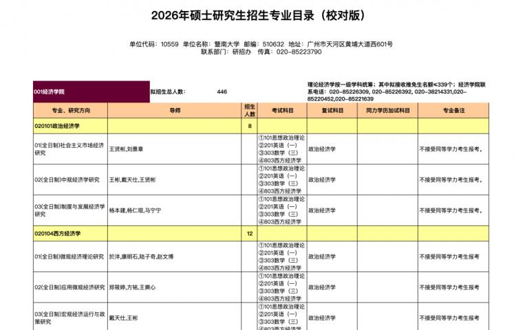 暨南大学26考研招生专业目录和考试大纲已经公布,共有45个学院273个专业招生,所有学院拟计划招生5855人,相比去年减少45人(25考研拟招5900人)。