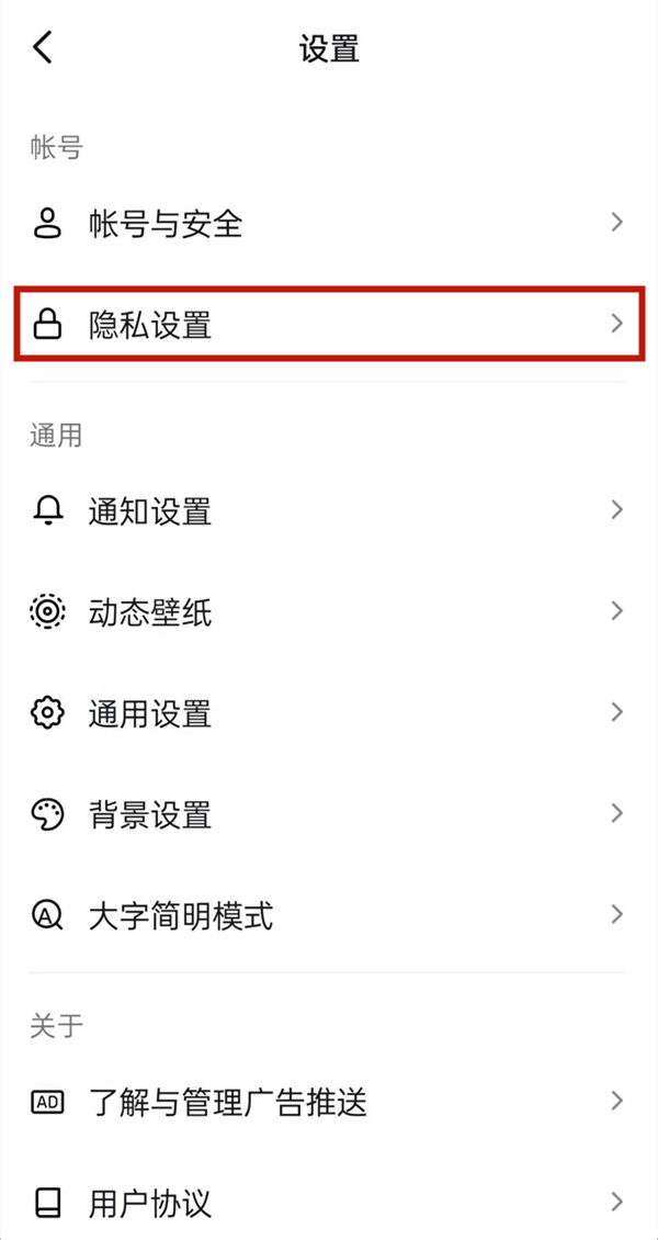 2、点击隐私设置。